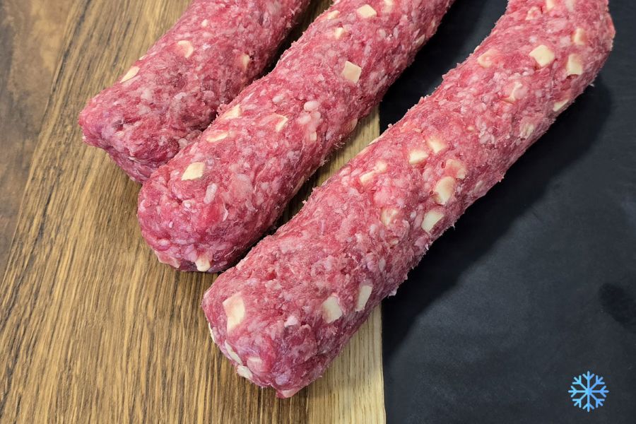 Sastav: 80% juneće meso, 15% sir ementaler, cvijet soli, češnjak, soda bikarbona, voda